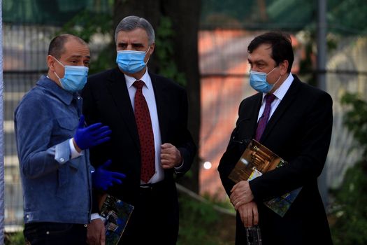 Primarul Sectorului 4, Daniel BĂLUȚĂ, împreună cu rectorul UMF „Carol Davila”, Viorel JINGA și cu profesorul Alexandru RAFILA susțin astăzi declarații de presă pe șantierul spitalului universitar de stomatologie.