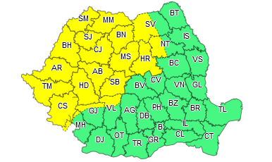 De altfel, Administrația Națională de Meteorologie (ANM) a emis, luni dimineață, o avertizare cod galben de vreme instabilă în zonele din vestul, nord-vestul și centrul țării.