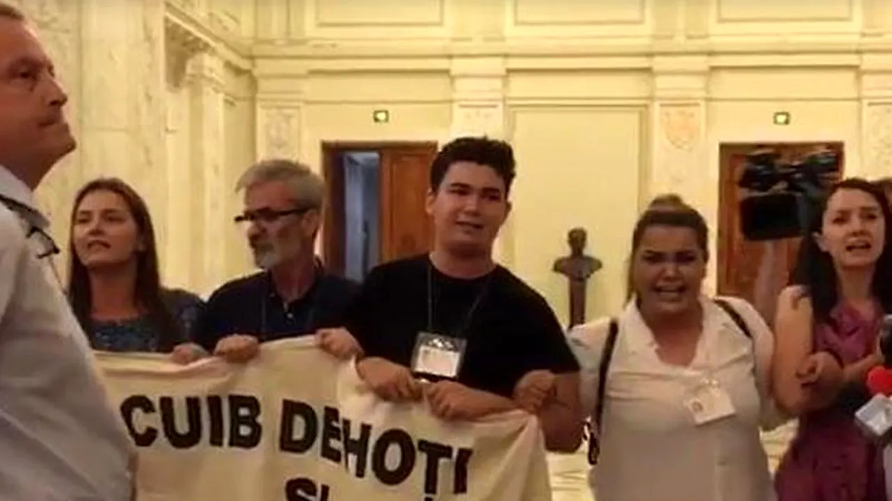 Mesajele protestatarilor din parlament: „Ceaușescu n-a murit, este Dragnea travestit”, „Cuib de hoți și de mafioți”