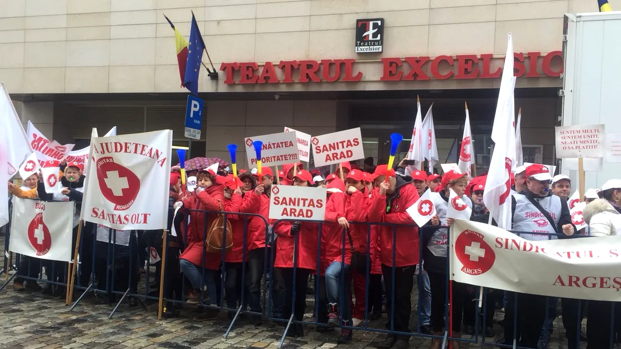 Aproximativ trei sute de sindicaliști Sanitas pichetează, marți, sediul Ministerului Sănătății, acțiunea făcând parte din calendarul anunțat al protestelor care se va încheia cu un miting în a doua jumătate a lunii aprilie.