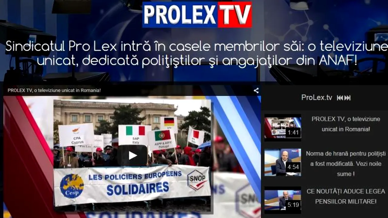 Sindicatul Național ProLex anunță că intră pe piața media cu un post de televiziune online, interactiv și dedicat, care și-a propus să-și transforme telespectatorii în cei mai informați angajați din Poliția națională, din cea locală sau din ANAF.