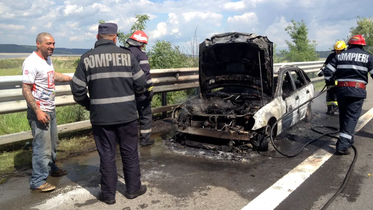 Șoferul ar fi încercat să pornească aerul condiționat, iar la scurt timp a simțit miros de fum. A apucat să oprească și să coboare, iar autoturismul s-a aprins ca o torță.