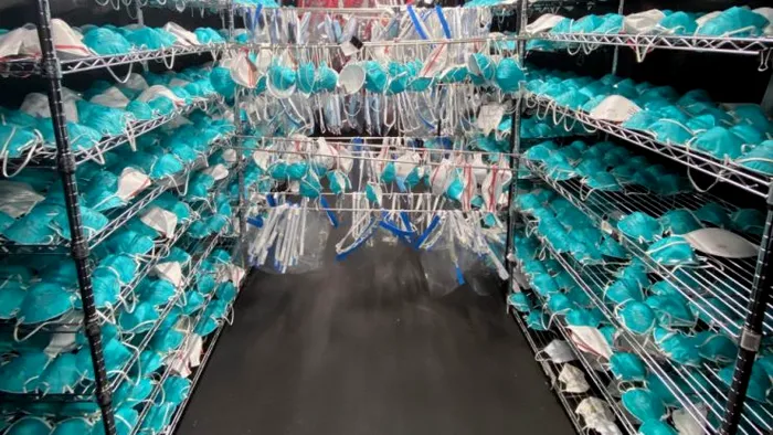 Primul sistem care poate dezinfecta mii de măști N95 în câteva ore a fost instalat în Long Island, statul New York, în vederea decontaminării sistemelor de protecție a regiunii nazofaciale.