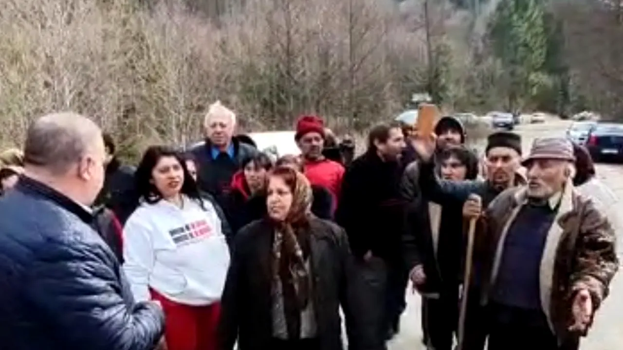 În imaginile video de mai jos, primarul satului Nucșoara, Cojocaru Ion, încearcă să discute cu sătenii revoltați.