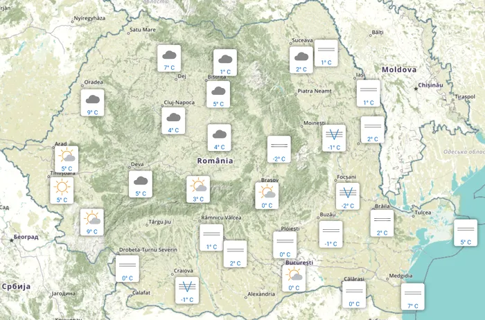 Vreme ceva mai însorită în partea de vest a României. Potrivit ANM, erau 5 grade la Arad și la Timișoara, în timp ce la Reșița se înregistrau 9 grade Celsius.