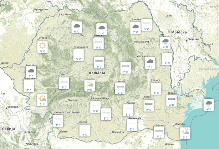 În București, la primele ore ale dimineții, se înregistrau 3 grade Celsius, iar ceața și-a făcut simțită prezența. A fost cer senins la Oradea (5 grade) și cer parțial noros la Constanța, unde termometrele au arătat 5 grade.