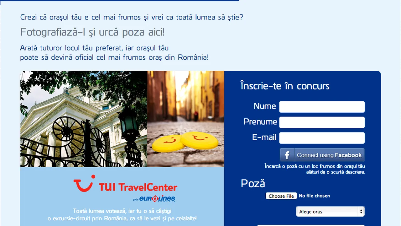 Concursul de fotografie "Turist în Orașul Meu", organizat de Mediafax în parteneriat cu Tui Travel Center în perioada 2 - 23 aprilie, s-a încheiat, câștigător fiind Ana-Maria Plăcintă Alexandrache, din Suceava, acest oraș câștigând și competiția pe baza voturilor primite la fotografii.