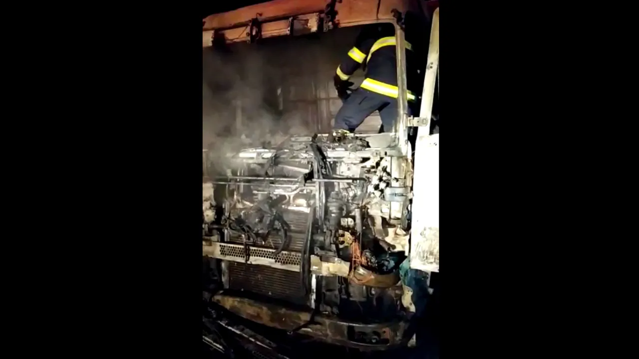 Potrivit reprezentanților Inspectoratului pentru Situații de Urgență Gorj, nu au fost înregistrate victime în urma incendiului izbucnit, joi seara, la camionul încărcat cu material lemnos.