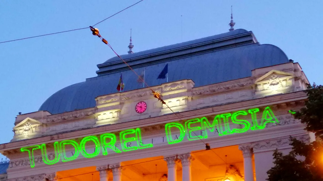 Un nou protest are loc, vineri seara, la Universitatea Alexandru Ioan Cuza” din Iași, unde mesajele „Tudorel demisia”, „Tudorel #toxic pentru UAIC” și „Dura lex sed lex, Tudorel rector – ex” au fost proiectate pe clădirea instituției.