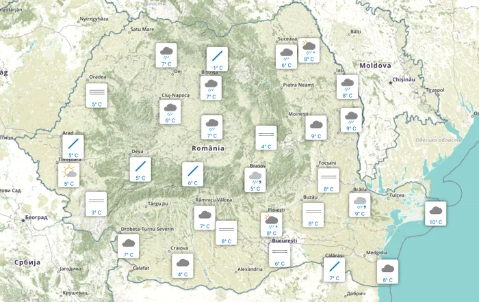La Timișoara au fost 5 grade și cer parțial noros, potrivit ANM, la Craiova s-au înregistrat 4 grade, iar la Brașov au fost 5 grade Celsius și burniță.