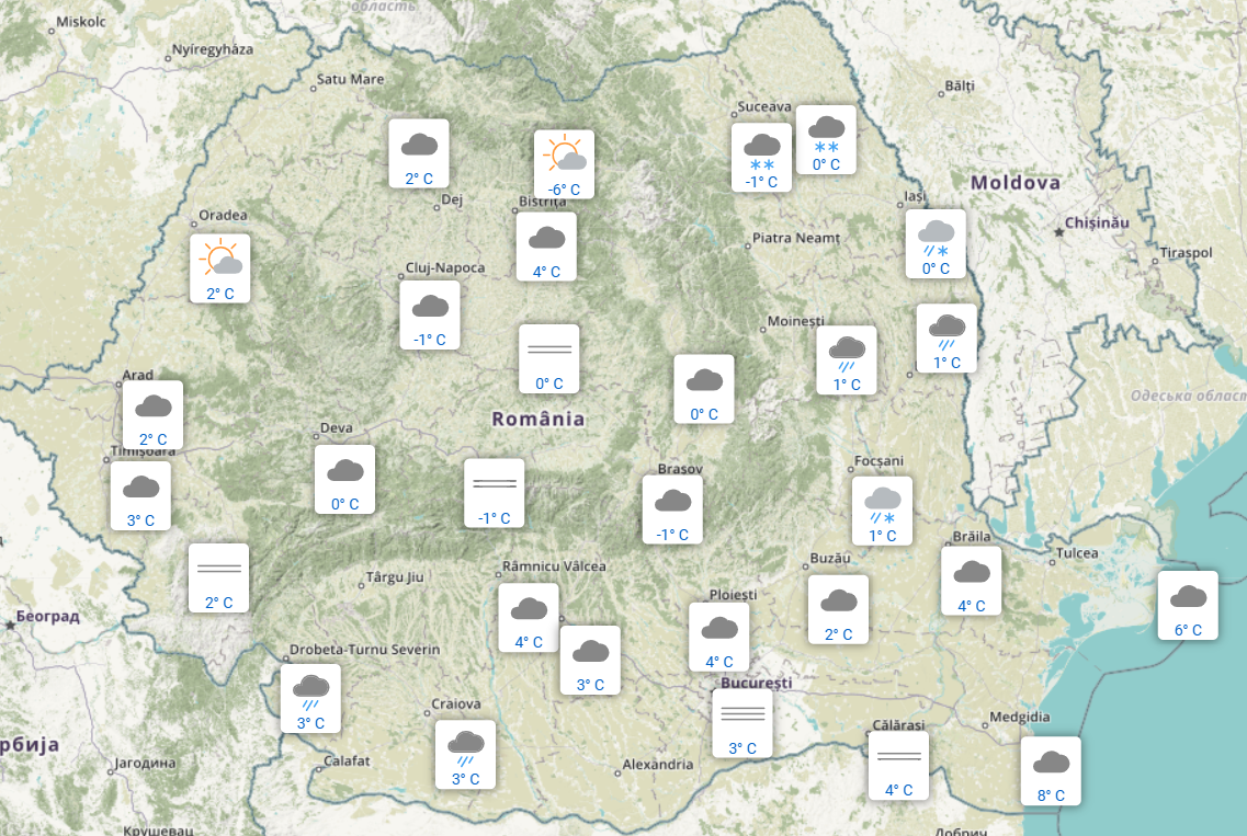Temperatura maximă se va situa în jurul valorii de 3 grade, iar cea minimă va fi de -2…-1 grad.