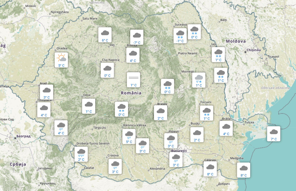 Temperatura maximă se va situa în jurul valorii de -2 grade, iar cea minimă va fi de -7…-5 grade.
