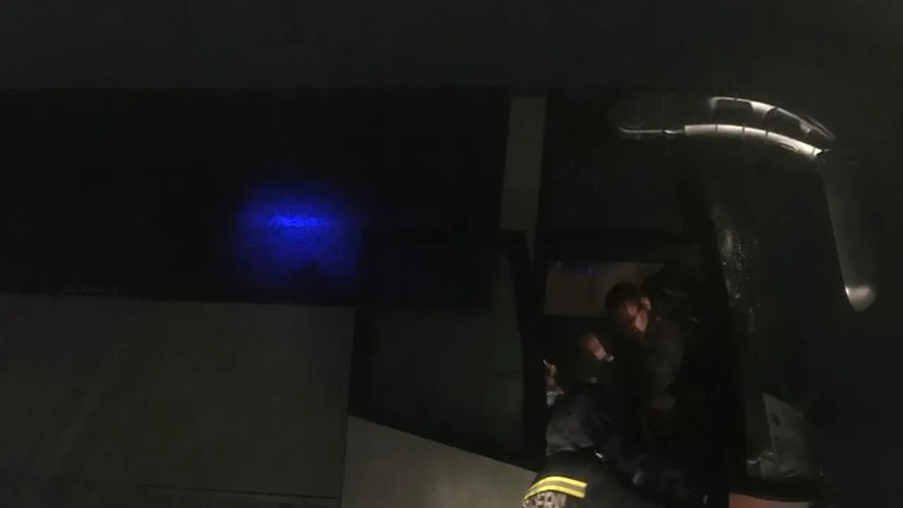 VIDEO | Autocar plin cu 30 de ucraineni, implicat într-un accident rutier în Tulcea