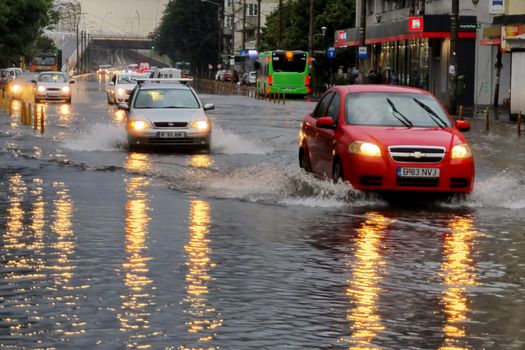 Sistemul de canalizare al orașului a fost dat peste cap de aversele abundente, mașinile și oamenii fiind practic blocați sau înaintând extrem de greu.