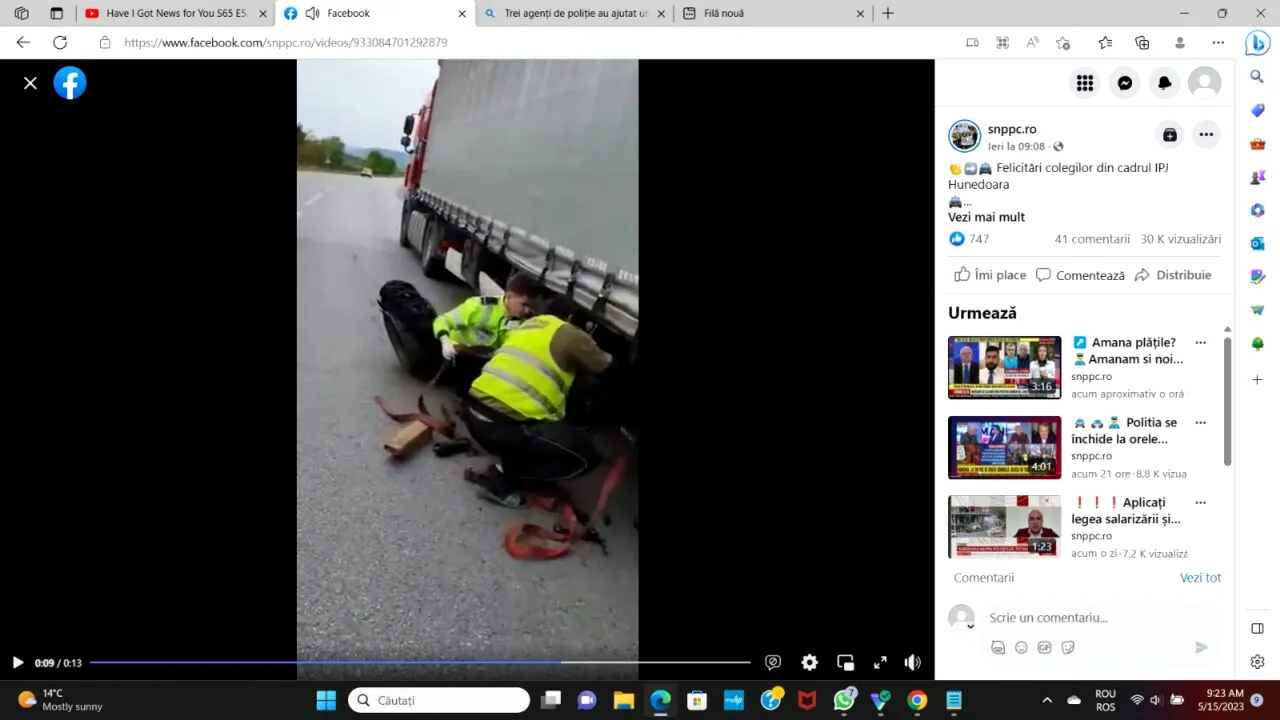 „Fără să stea pe gânduri, cei trei agenţi de poliţie, Cristian, Vlad şi Darius, din cadrul Biroului Rutier şi al celui de Ordine Publică, şi-au împărţit rapid sarcinile: aceştia au dat o mână de ajutor conducătorului auto şi au dirijat traficul rutier în zonă, astfel încât, în mai puţin de 20 de minute, autotrenul şi-a putut continua drumul – nu înainte ca şoferul să le mulţumească tinerilor poliţişti pentru sprijinul acordat”, au mai povestit sindicaliştii.