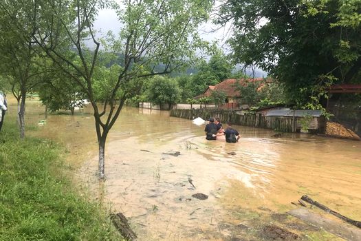În acest moment, 40 de pompieri intervin pentru evacuarea apei cu 3 motopompe de mare capacitate și continuă evacuarea bunurilor din locuințe.