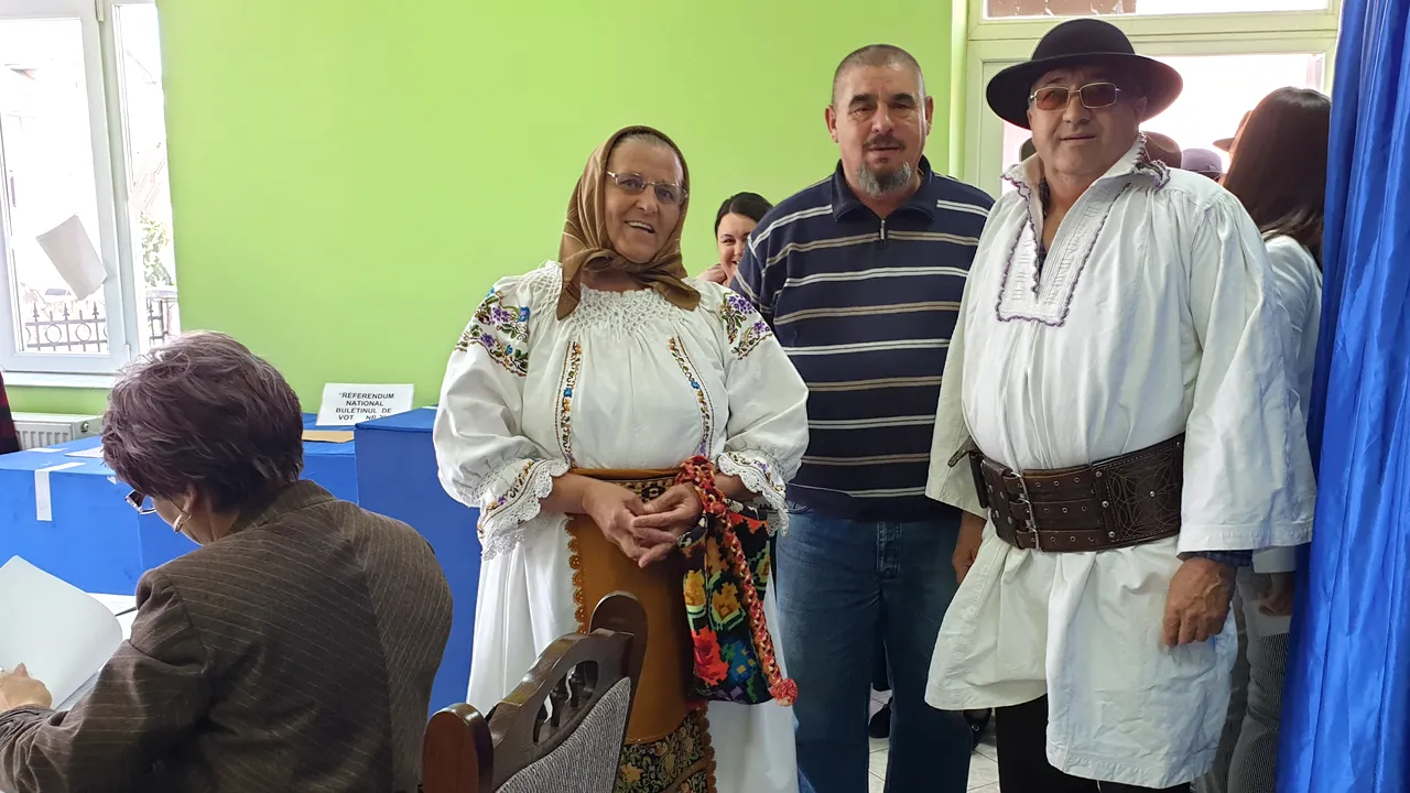Și Virginia Linul, meșter popular, a mers la vot îmbrăcată într-un costum popular traditional, împreună cu mama sa și cu fiica, aceasta purtând o rochie stilizată cu motive inspirate din portul popular românesc.