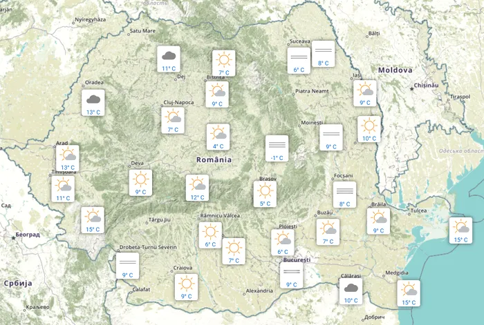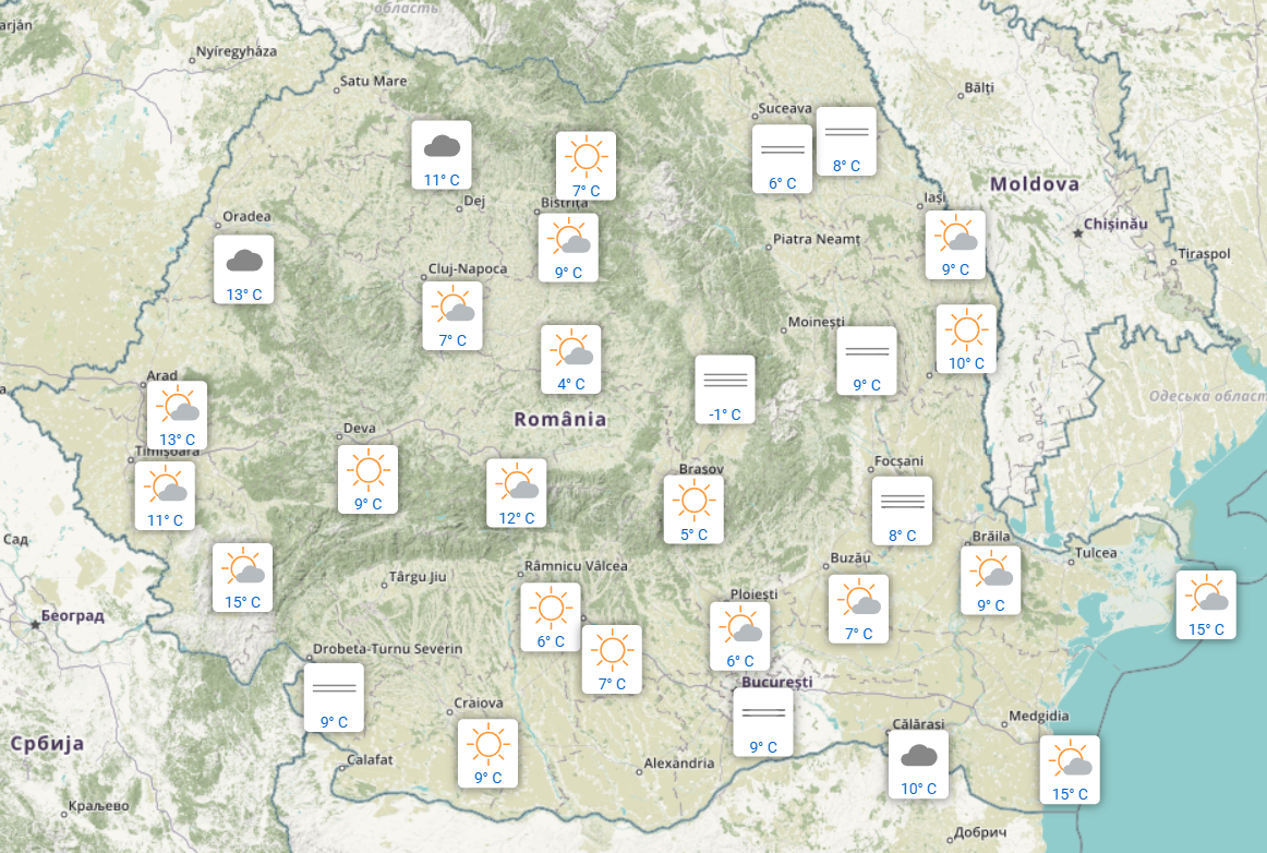 Potrivit informațiilor transmise de ANM, vremea intră într-un proces de răcire, ceea ce nu este o surpriză pentru această perioadă a anului. Totuși, ziua de luni va fi una frumoasă, din punct de vedere termic, cu temperaturi ceva mai scăzute decât duminică.