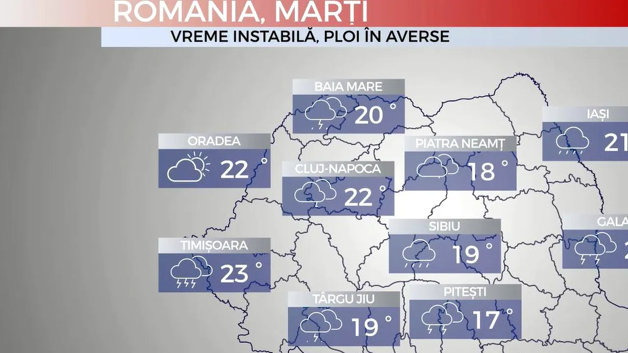 VREMEA. ROMANIA, MARȚI NOAPTEA PLOI ÎN MAJORITATEA REGIUNILOR