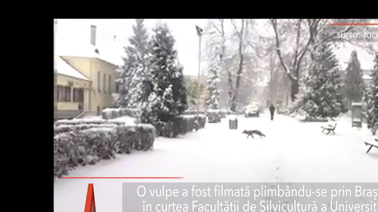 O vulpe a fost surprinsă plimbându-se prin Brașov, în curtea Facultății de Silvicultură a Universității „Transilvania”. Animalul probabil căuta hrană și nu a contat că străzile erau acoperite cu zăpadă.