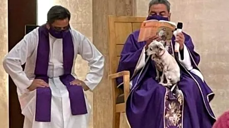 Un preot din Mexic a oficiat slujba cu câinele în brațe: „Îmi pare rău, dar cățelușul meu este foarte bolnav și dacă îl las acasă se întristează”