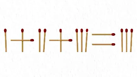 Test de inteligență | Mutați un singur chibrit, astfel încât egalitatea din imagine să devină corectă