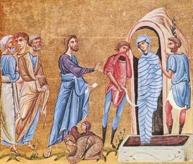 În fața mormântului, profund mișcat de suferința celor din jur, Iisus a plâns. Apoi a cerut să fie dată piatra la o parte și a rostit cu glas puternic chemarea care a schimbat totul: Lazăr a ieșit viu din mormânt.