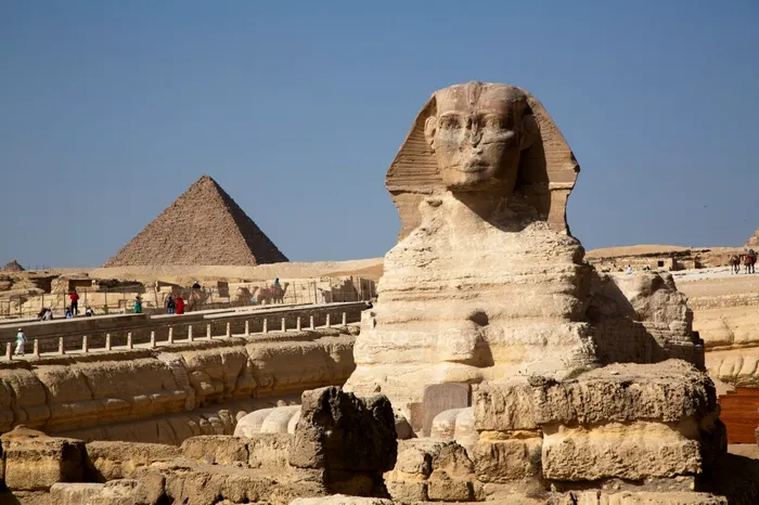 Chipul sfinxului are trăsături similare cu chipul unei statui ale faraonului. Chipul Sfinxului este degradat – îi lipsesc barba ceremonială de faraon și nasul. Egiptologii i-au identificat fragmentele bărbii sale, dar nasul ar fi fost distrus de un sufit musulman din secolul al XIV-lea. Potrivit folclorului local, el ar fi ordonat distrugerea nasului pentru că unii țărani locali îl venerau și îi aduceau ofrande, încălcând legile islamice.