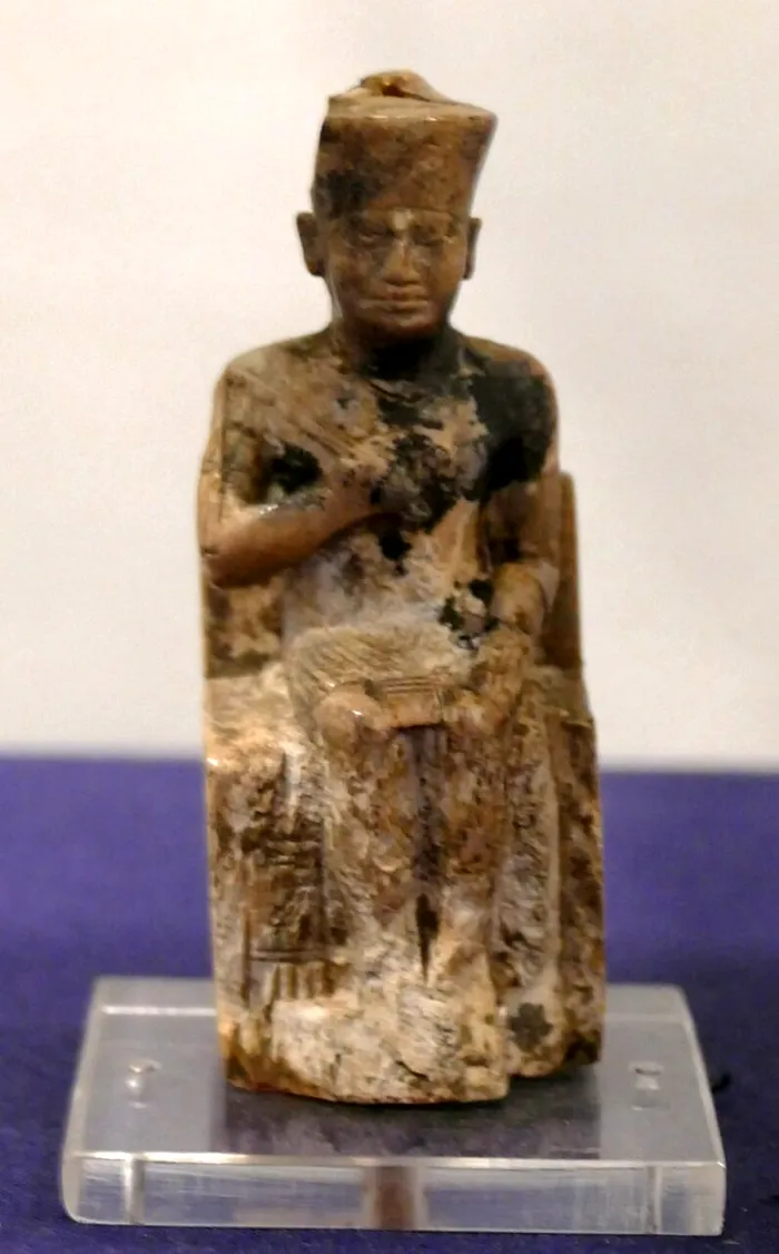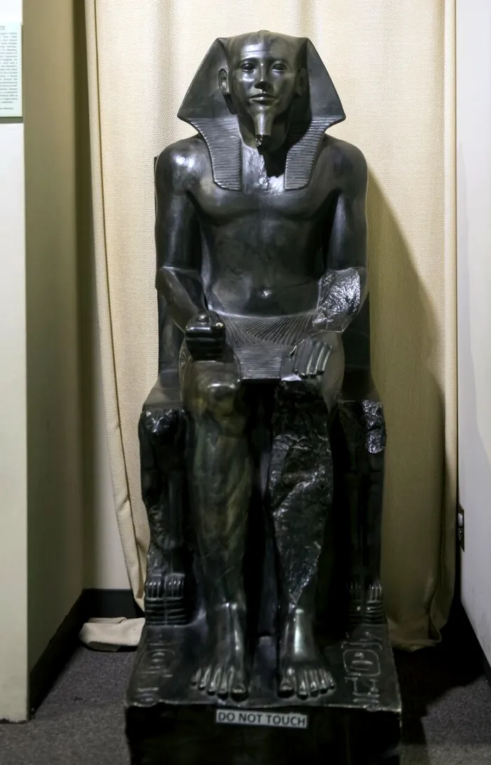 În 1837, un ofițer britanic și un inginer i-au excavat piramida și i-au găsit camera mortuară, inclusiv sarcofagul său masiv din piatră, care conținea fragmente de lemn din sicriul său și un schelet parțial învelit într-o pânză grosieră. Sarcofagul a fost scos din piramidă și a fost trimis cu o navă la Muzeul Britanic din Londra, dar nava comercială Beatrice care îl transporta s-a pierdut după ce a părăsit portul din Malta pe 13 octombrie 1838.