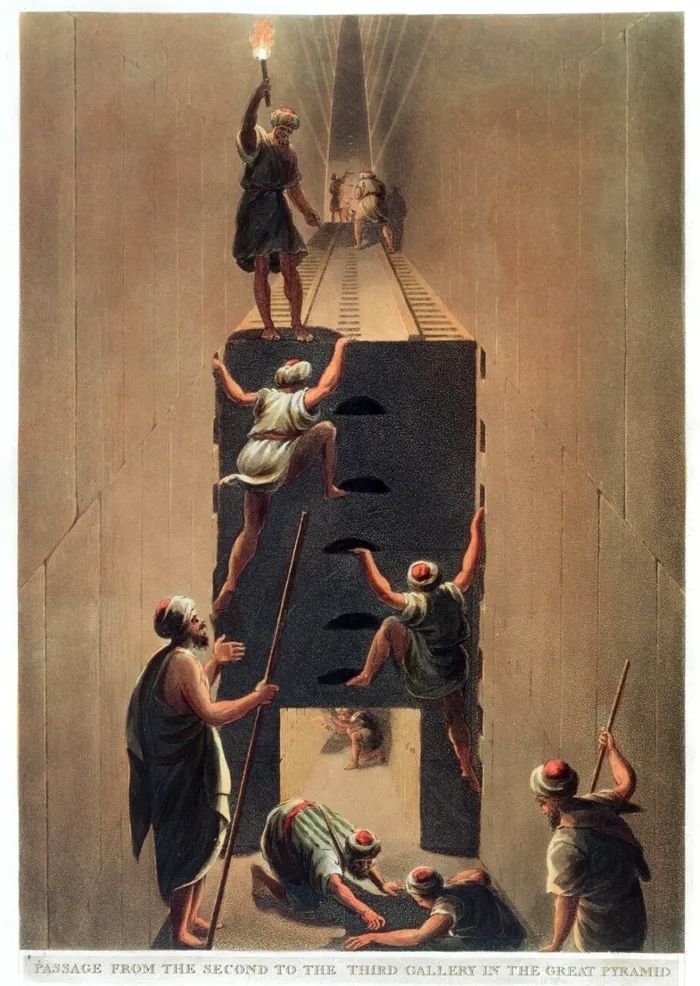 Încercând să ajungă în vârful piramidei, MrBeast a trecut prin marea galerie, prin pasaje strâmte, puțuri și tuneluri de ventilație, și chiar a dat peste lilieci, doar pentru a vedea o inscripție lăsată în urmă cu 4.600 ani de către o echipă de constructori. Într-o groapă de lângă Marea Piramidă, în 1952, a fost găsită o barcă solară de lemn, dezasamblată, care a fost restaurată și este acum expusă la Muzeul Egiptean din zona metropolitană a orașului Cairo.