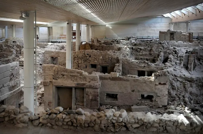 În jurul anului 1600 î.Hr., în Santorini, un vulcan masiv a erupt. A fost înregistrată ca cea mai mare erupție vulcanică din istoria antică, cauzând colapsul centrului insulei în mare, rezultând caldeira pe care o vedem azi. Valurile gigantice provocate de tsunami și norii de cenușă au devastat toate regiunile înconjurătoare, inclusiv Egiptul. Arheologii au găsit Akrotiri, unul dintre marile orașe minoice cu tehnologie avansată, artă intrigată, economie înfloritoare și o societate dezvoltată.