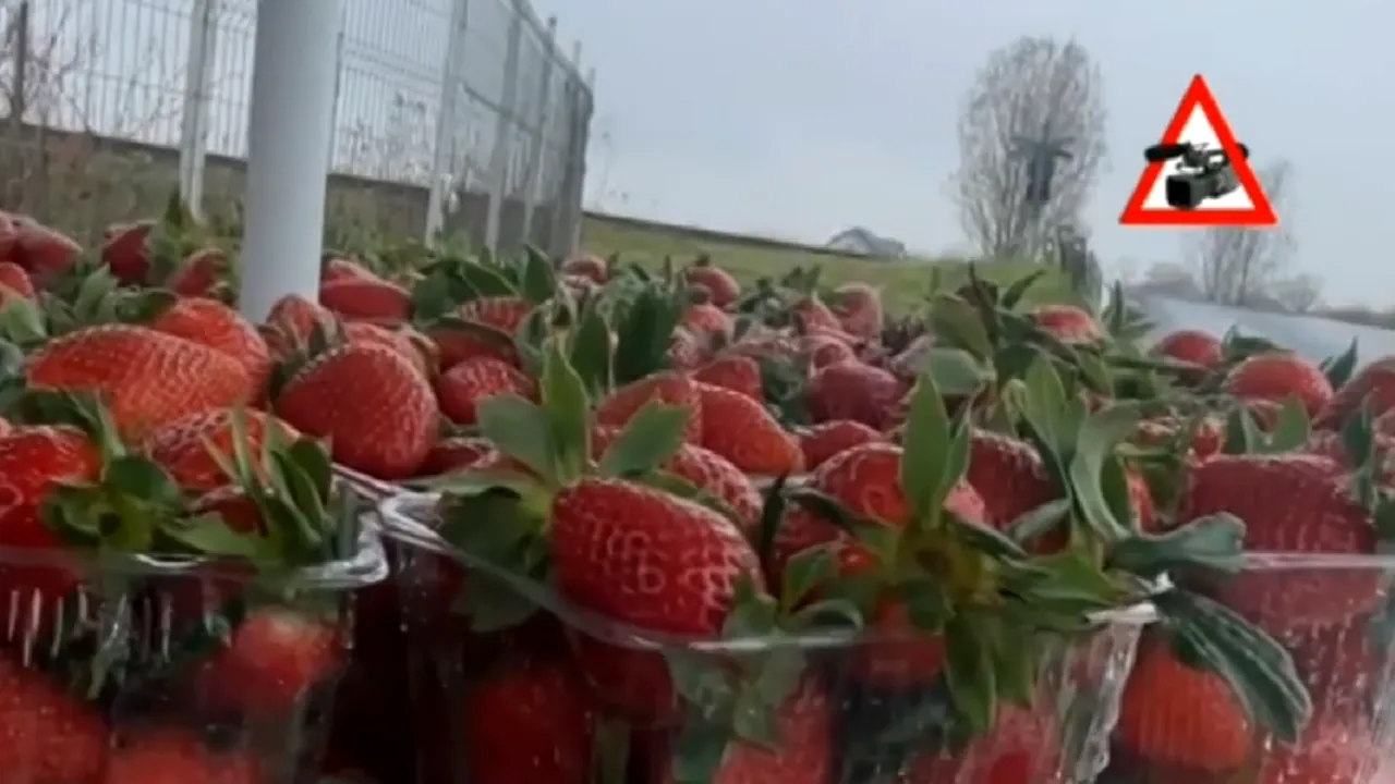 La marginea drumului, comercianții vând căpșuni aduse din import, dar spun că sunt românești. Fructele sunt promovate drept bio și de la Halmeu, însă plantațiile din zonă nu au produs încă nimic. Recolta reală va ajunge pe tarabe abia peste câteva săptămâni.