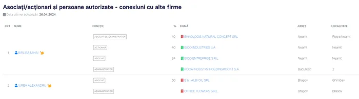 Mihai Bîrliba (asociat 80%) este născut în anul 1964 și, potrivit termene.ro, este asociat sau administrator la patru firme din județul Neamț: