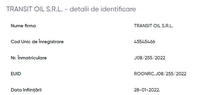 Firma TRANSIT OIL din Brașov, beneficiara autorizației de construire emisă „nelegal” – potrivit procesului verbal întocmit de ISC – a fost înființată în 28 ianuarie 2022 și are ca obiect de activitate „Comerț cu ridicata al combustibililor solizi, lichizi și gazoși și al produselor derivate”.