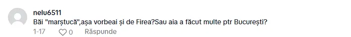 „Băi marștucă, așa vorbeai și de Firea? Sau aia a făcut multe ptr. București?” – mesaj postat de „nelu6511”.