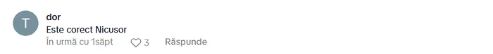 „Este corect Nicușor” – mesaj postat de „dor”. Contul prezintă aceleași caracteristici, respectiv activitate ZERO.