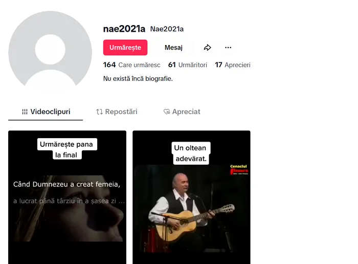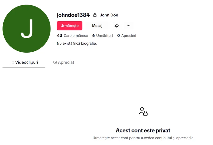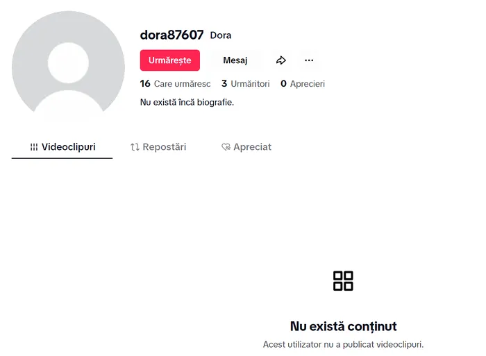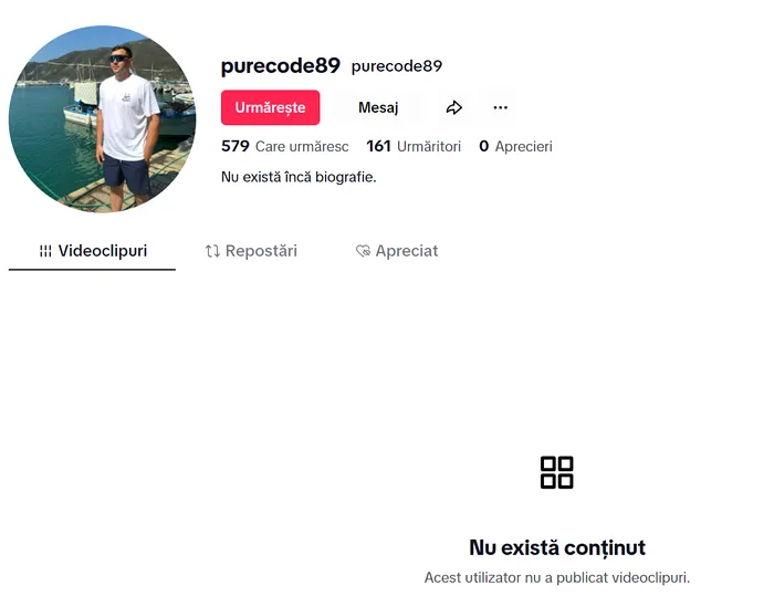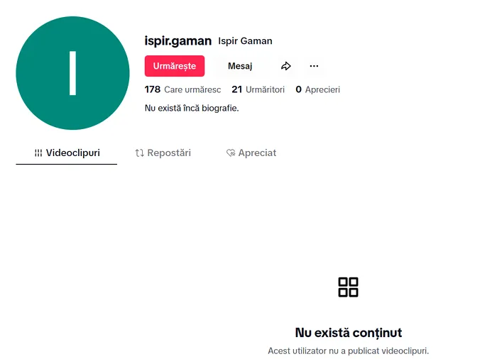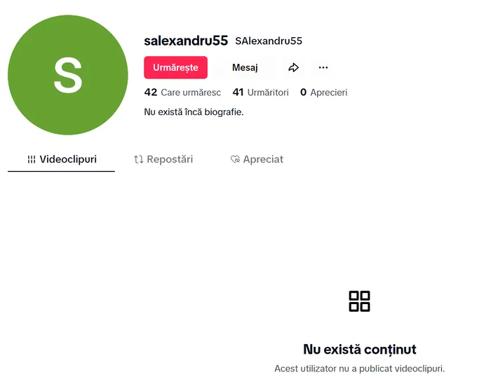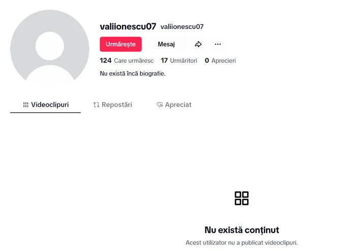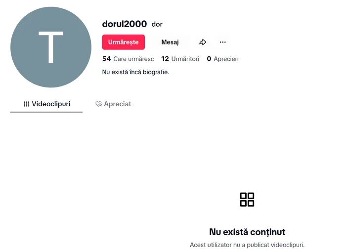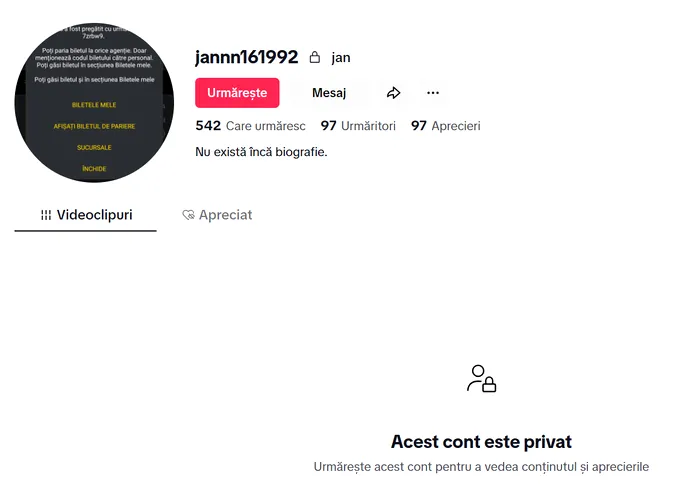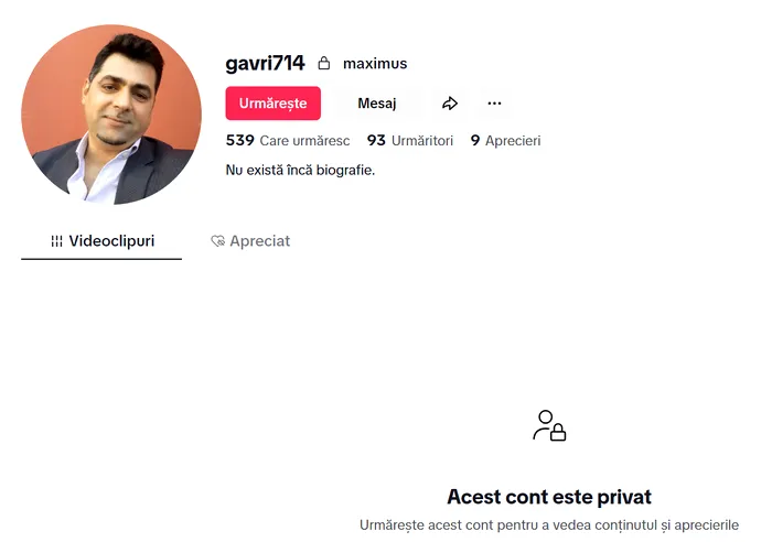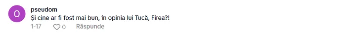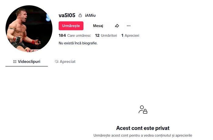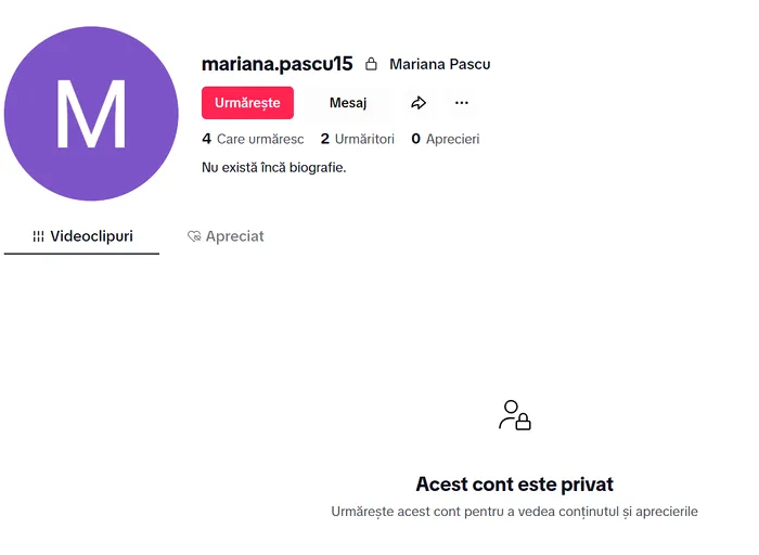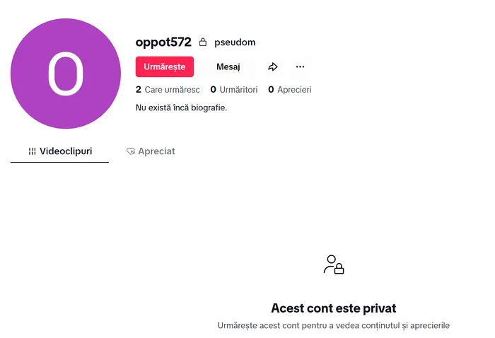 „Și cine ar fi fost mai bun, în opinia lui Tucă, Firea?” – mesaj postat de „pseudom”. Cont TikTok „privat”, cu doar 2 urmăritori, în timp ce „posesorul” nu este interesat de activitatea nimănui.