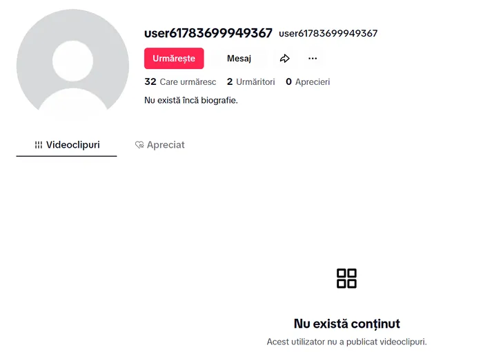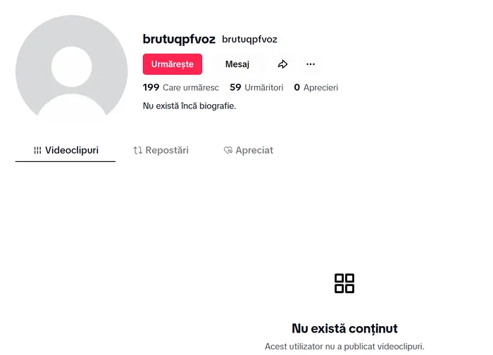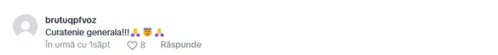 „Curățenie generală”, cere utilizatorul „brutuqpfvoz”. Nu există nicio informație referitoare la identitatea utilizatorului TikTok, nu există nicio activitate.