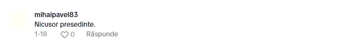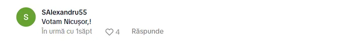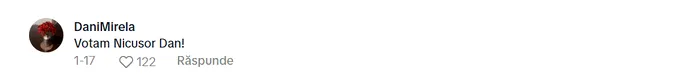 Avalanșa de comentarii pro-Nicușor Dan continuă, scenariul este același, totul pare tras la indigo. Conturile TikTok respective nu au activitate și nu oferă nicio informație referitoare la adevărata indentitate a utilizatorilor.
