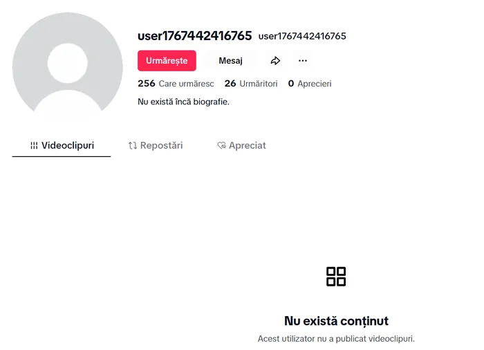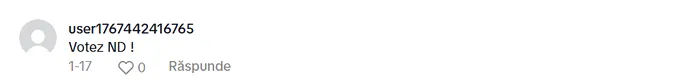 „Votez ND” – mesaj postat de „user1767442416765”. Contul TikTok nu are conținut.