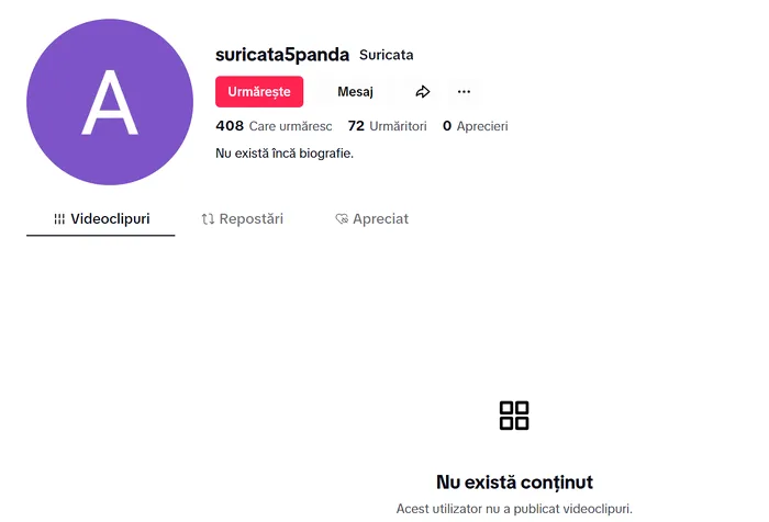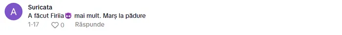 „A făcut Firiia mai mult. Marș la pădure” – comentariu postat de „Suricata”. Cont TikTok fără conținut.