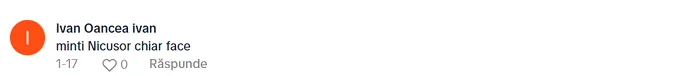 „Minți, Nicușor chiar face” – comentariu postat de „Ivan Oancea Ivan”. Cont TikTok fără conținut.
