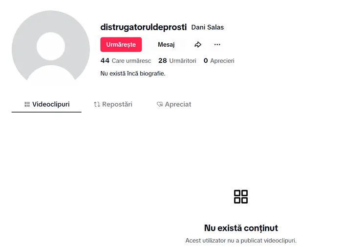 „Cel mai bun primar de la revoluție…” – mesaj postat de „Dani Salas”. Cont TikTok „distrugătorul de proști” – fără activitate.