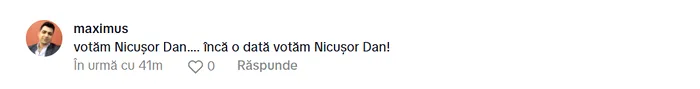 „Votăm Nicușor Dan… încă o dată votăm Nicușor Dan” – mesaj postat de „maximus”. Cont TikTok privat.