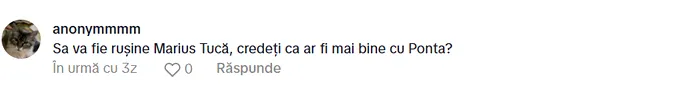 „Să vă fie rușine Marius Tucă, credeți că ar fi mai bine cu Ponta?” – mesaj postat de „anonymmmm”. Cont TikTok fără activitate.