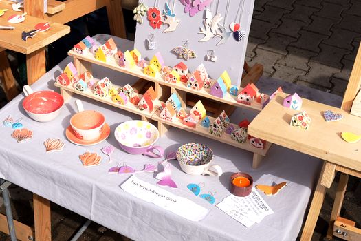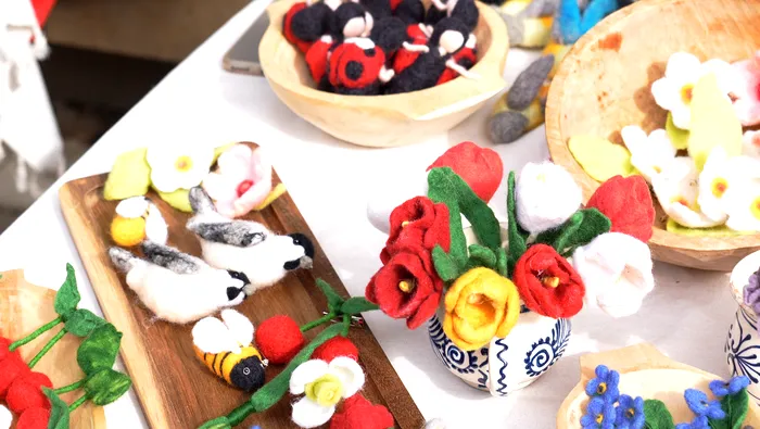 Mărțișoarele din lână împâslită sunt la mare căutare în cadrul târgului.