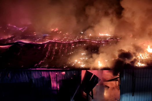 După mai bine de 12 ore de la producerea incendiului, pompierii încă se luptă să stingă focul.