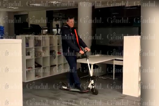 În imaginile intrate în posesia Gândul îl vedem pe Ministrul Apărării, Ionuț Moșteanu. Stăpânește fără emoții trotineta electrică și face slalom printre rafturi și alte obiecte de mobilier.
