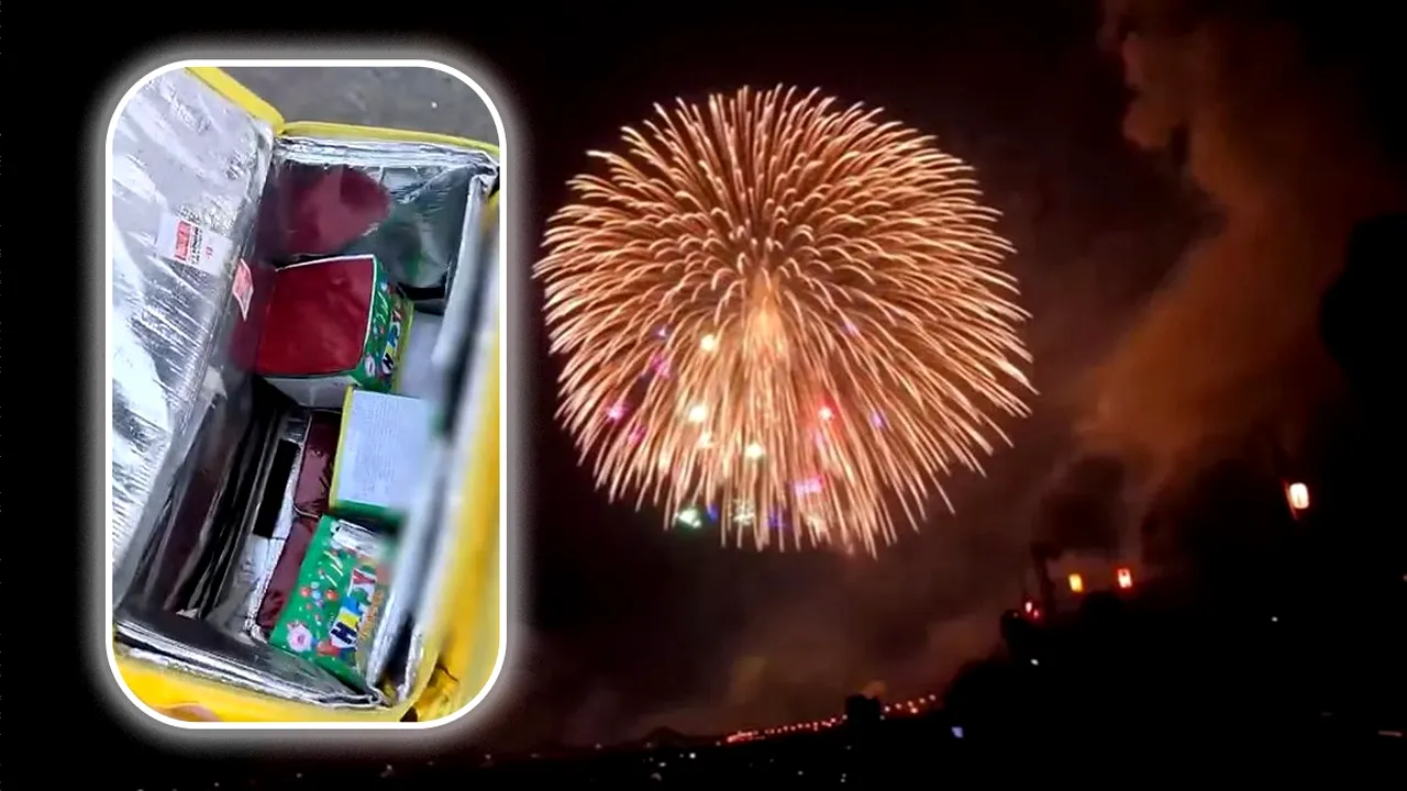 Persoana a fost interceptată de jandarmi chiar în momentul în care revenea cu geanta de livrare. În urma verificărilor, au fost găsite înăuntrul acesteia mai multe articole pirotehnice din categorii interzise de lege.