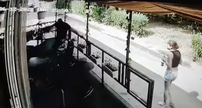 Din imaginile surprinse de camerele de supraveghere de pe terasa barului se poate vedea cum scandalagiul, cu o sticlă în mână, sare gardul terasei și îl atacă cu pumnii pe un bătrân care încearcă să se apere cu un scaun, dar cade secerat pe podeaua terasei în urma loviturilor primite.